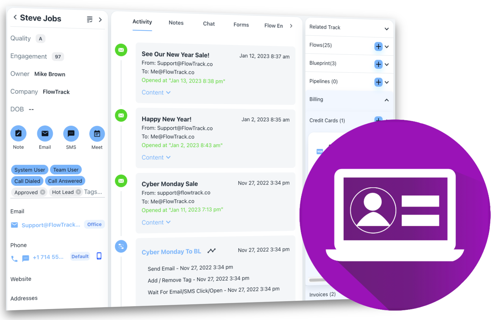 Effortlessly close sales in your pipelines with click-to-call, email, and SMS